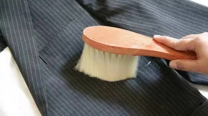 这时候,就需要一把湿润的小刷子,沿着衣服的纹理轻轻刷去灰尘等颗粒物。注意,不要垂直于纹理。有时,也可以用胶带纸对付顽固、不易去除的颗粒物哦!